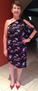 Do you ever have that absolute need to do something with fabric even when the practical side of you or the person with you (in this case my husband)tells you that really you should wait till you are with your machine. The result was wearable but I wasn’t happy with the look not smooth enough and for me the drape didn’t seem to give the effect I wanted. So when I got home I sewed it up on the machine and changed the armhole position to the folded side making it more flattering I think.