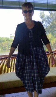 blue dress buttoned at top button