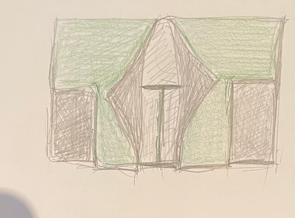 I bought some felled wool, from The Selvedge Society on Instagram in winter last year . I didn’t get around to using it then but thought it may work as a jacket or cape . The immediate issue was I only had 150cm x 110cm of fabric to use. It is a gorgeous double sided Green and Grey combination. I used it all a zero waste pattern.